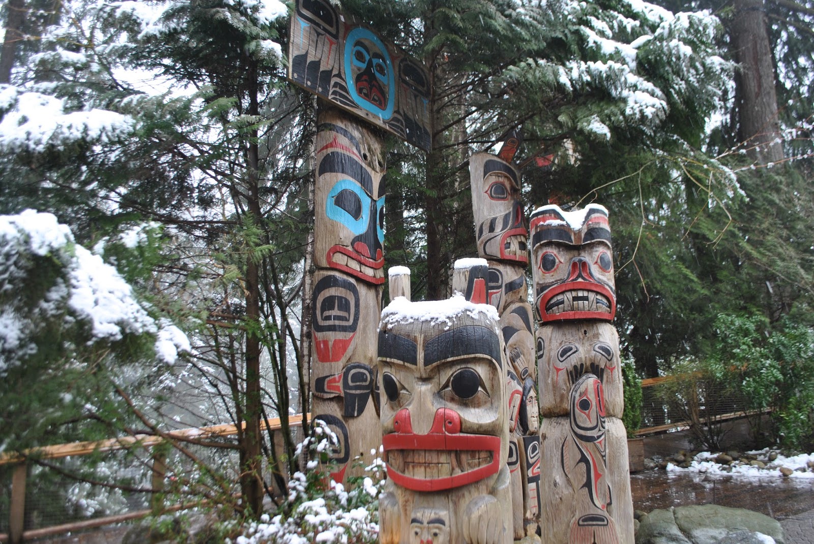 One of the things that I love about Vancouver and Victoria is the vibrant presence of First Nations culture. From the time you step into Vancouver International Airport,, aboriginal art pieces,especially totem poles, are on prominent display. Strolling around both cities, I discovered that totem poles are as common as the trees that often surround them.