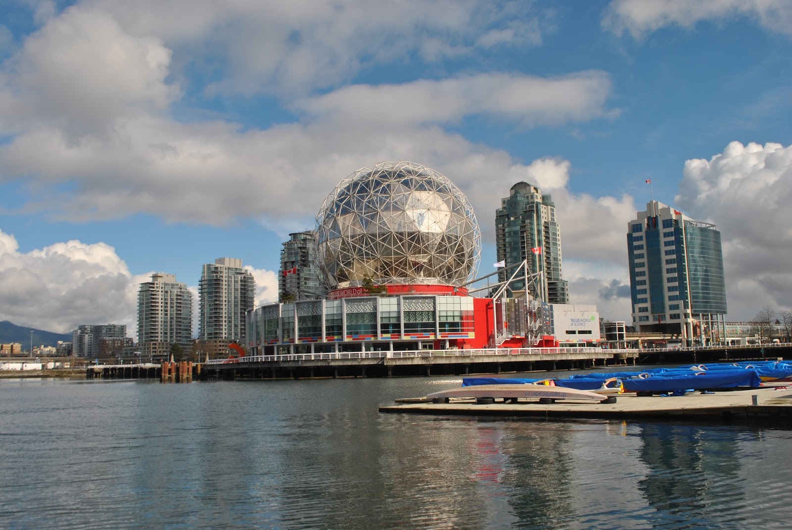 Granville Island is a shopping district that actually requires you to hop a ferry to reach. Floating on the boat, I glimpsed the prettiest aquatic scenes. Vancouver showcases sleek architectural structures like the Science World sphere above.